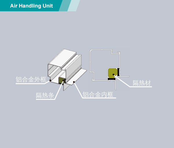 壹号新一代MAH组合式空气处理机,艾洛斯(Aiolos)系列,采用防冷桥铝合金框架结构设计,面板与框架为压扣连接方式。